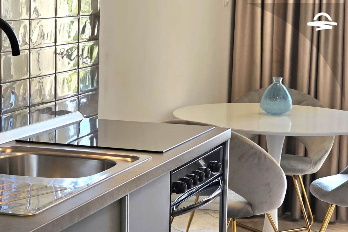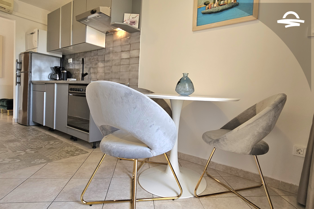 This nice apartment has 45 m2 and can accommodate 2-4 persons. It consists of fully equipped kitchen and living room, one double room, bathroom with shower, and balcony of 6 m2 on the sea side.