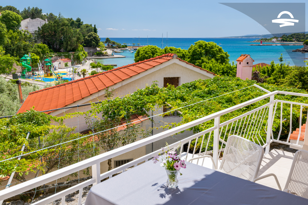 The apartment Ana S 3 is situated on the 1. floor of a family house. This nice apartment of 60 m2 consists of kitchen and living room, one double room, one room with separate beds, bathroom with shower, and balcony of 11 m2 with wonderful view on the sea and the old part of the town. The apartment can accommodate 4 persons.