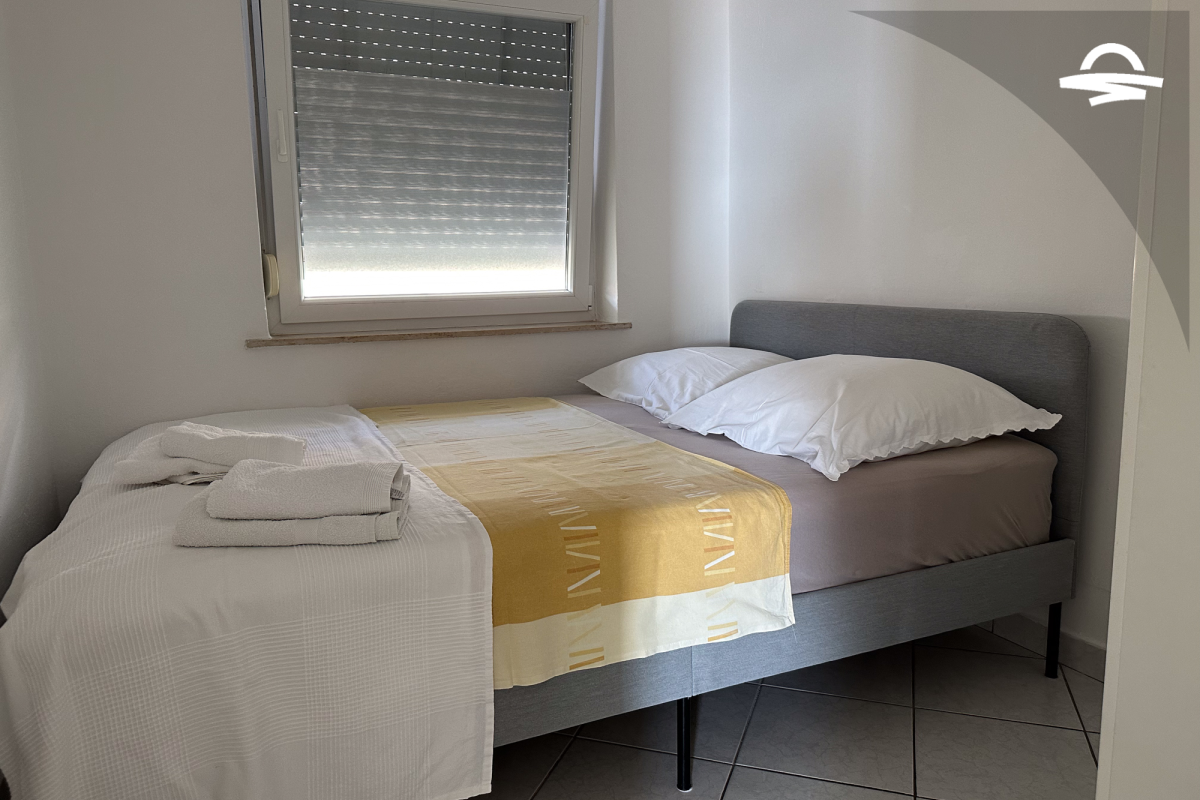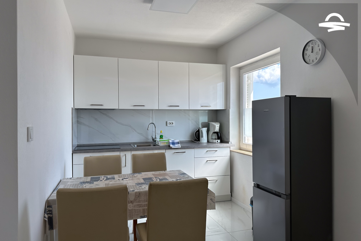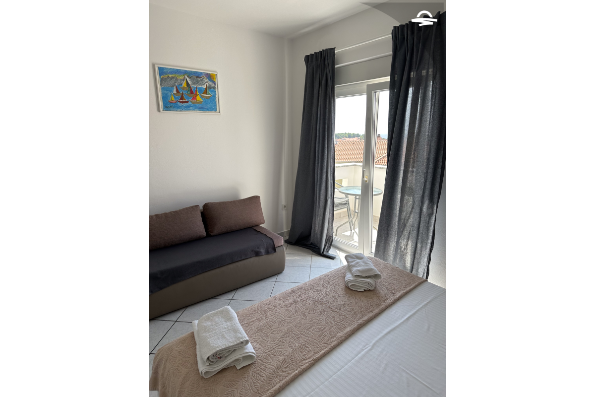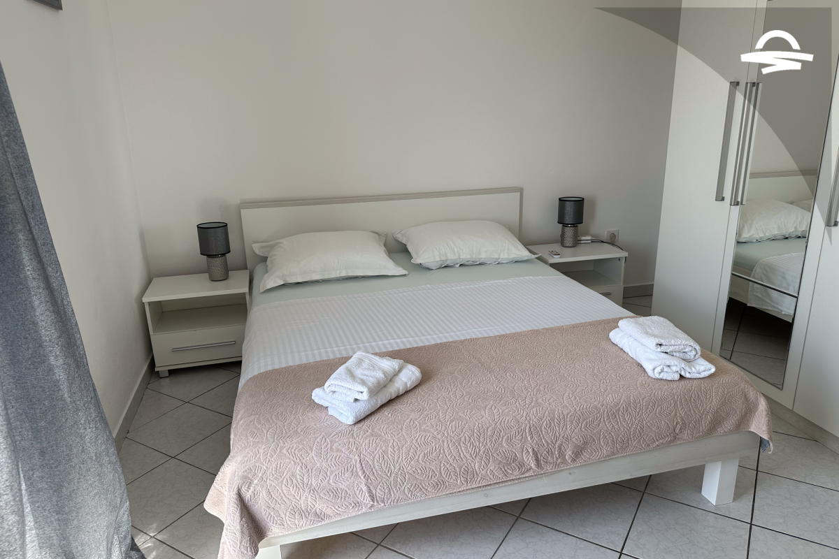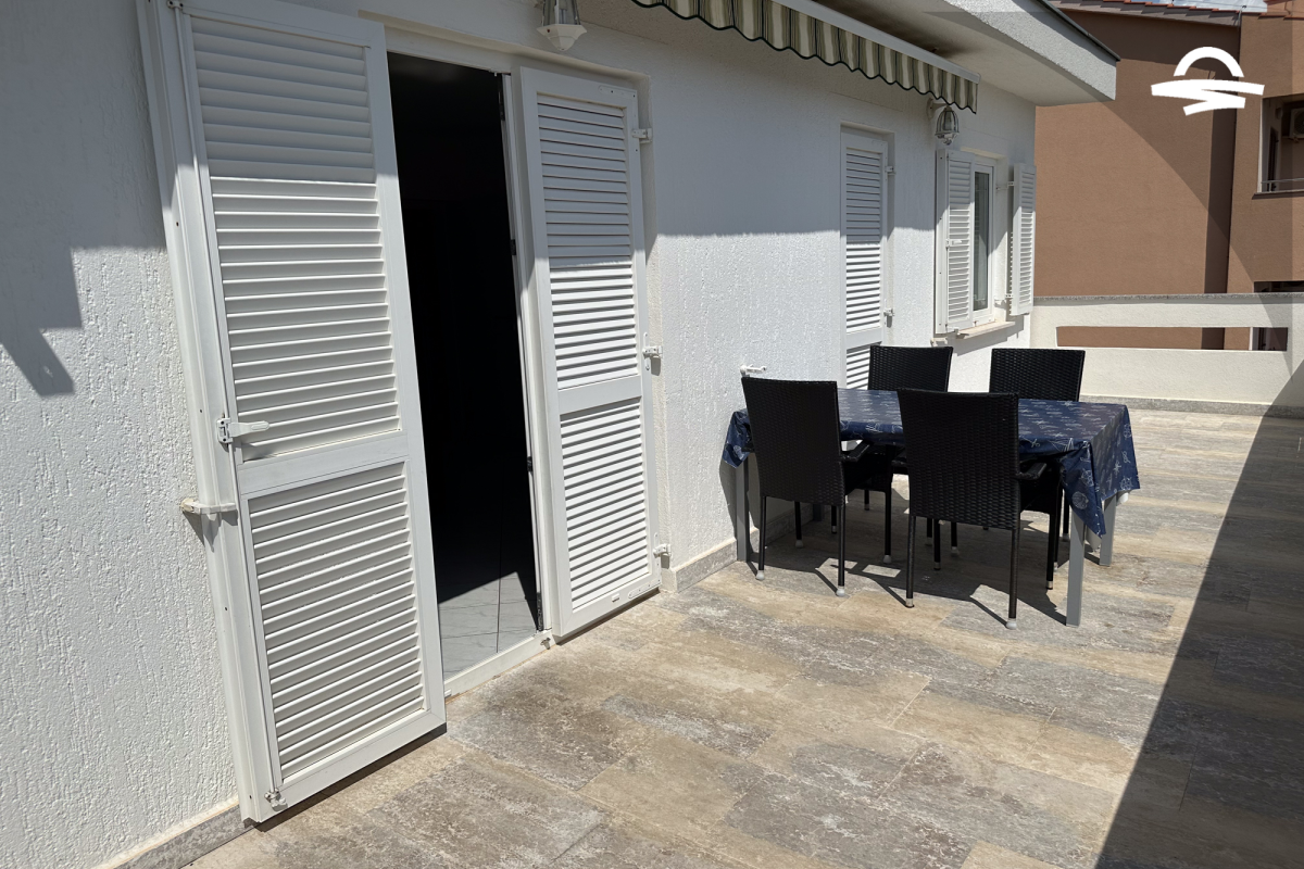 The apartment Barica is situated on the 2. floor of a family house. This nice apartment of 70 m2 has kitchen and living room, one double room, one triple room, one bathroom with bathtub, one bathroom with shower, and balcony of 16 m2 with wonderful sea view. It is ideal for 4-5 persons.