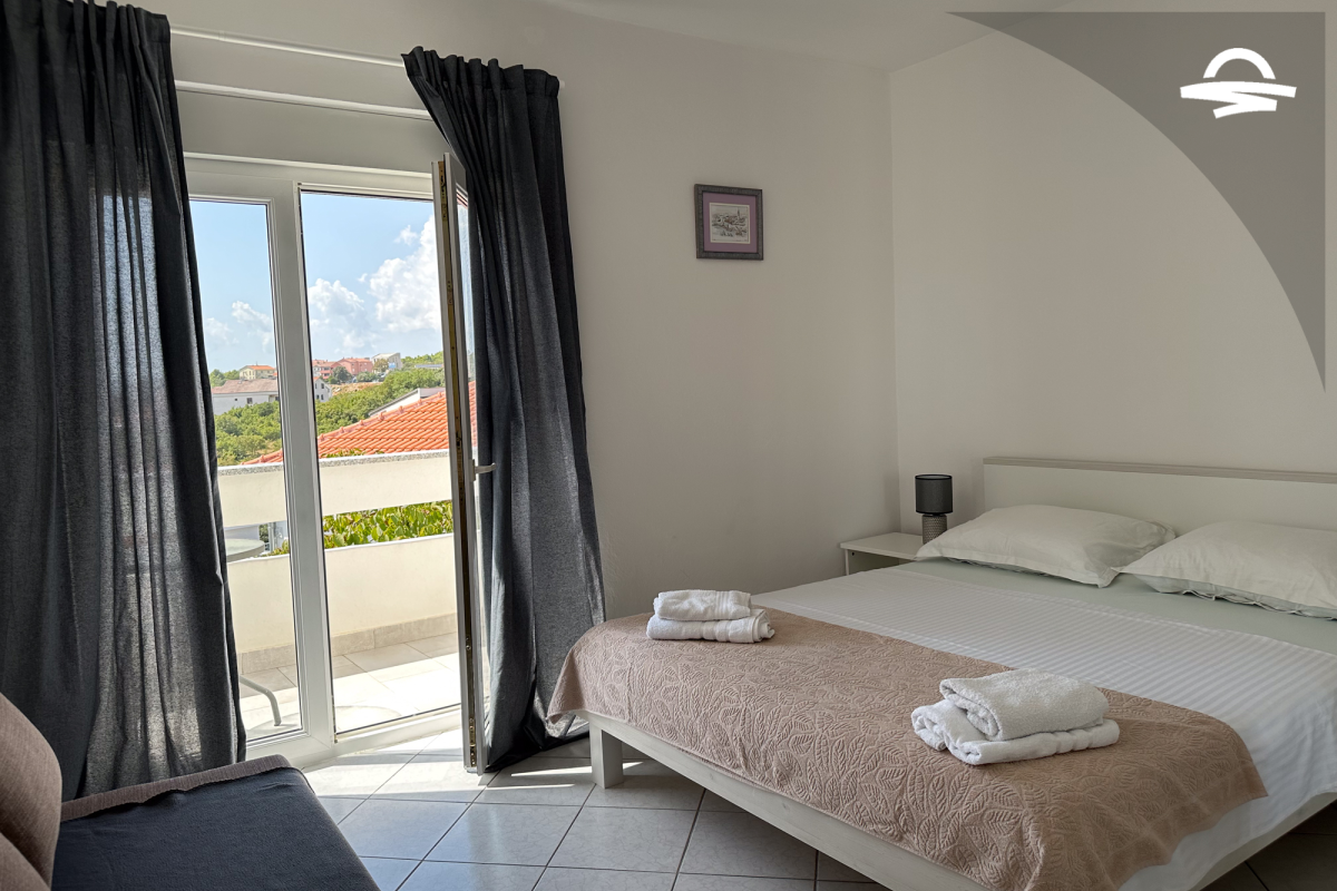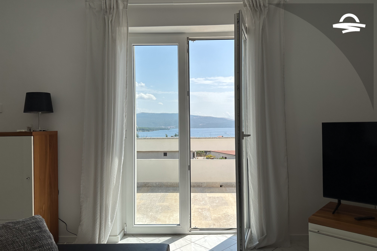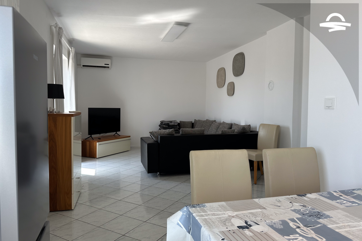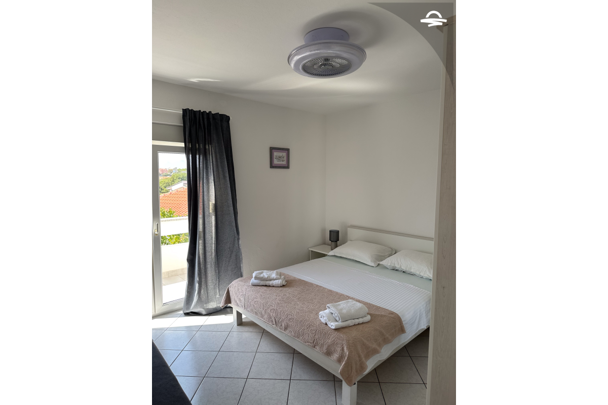 The apartment Barica is situated on the 2. floor of a family house. This nice apartment of 70 m2 has kitchen and living room, one double room, one triple room, one bathroom with bathtub, one bathroom with shower, and balcony of 16 m2 with wonderful sea view. It is ideal for 4-5 persons.