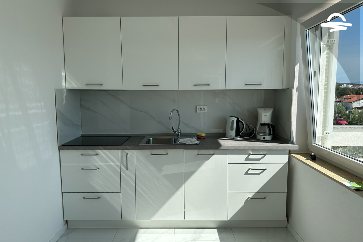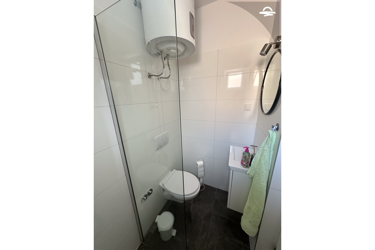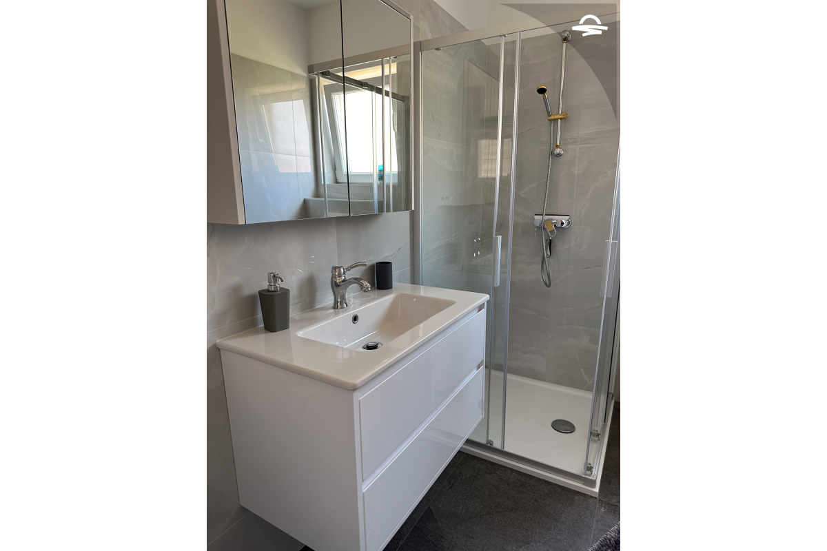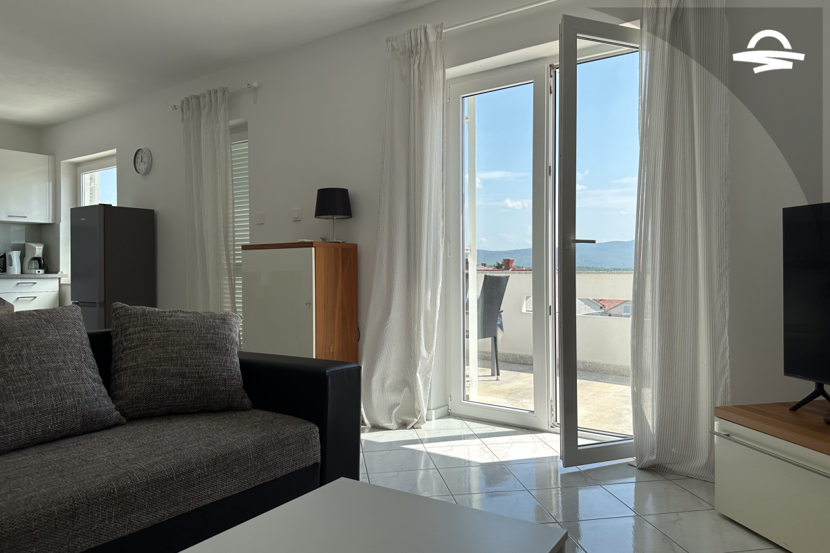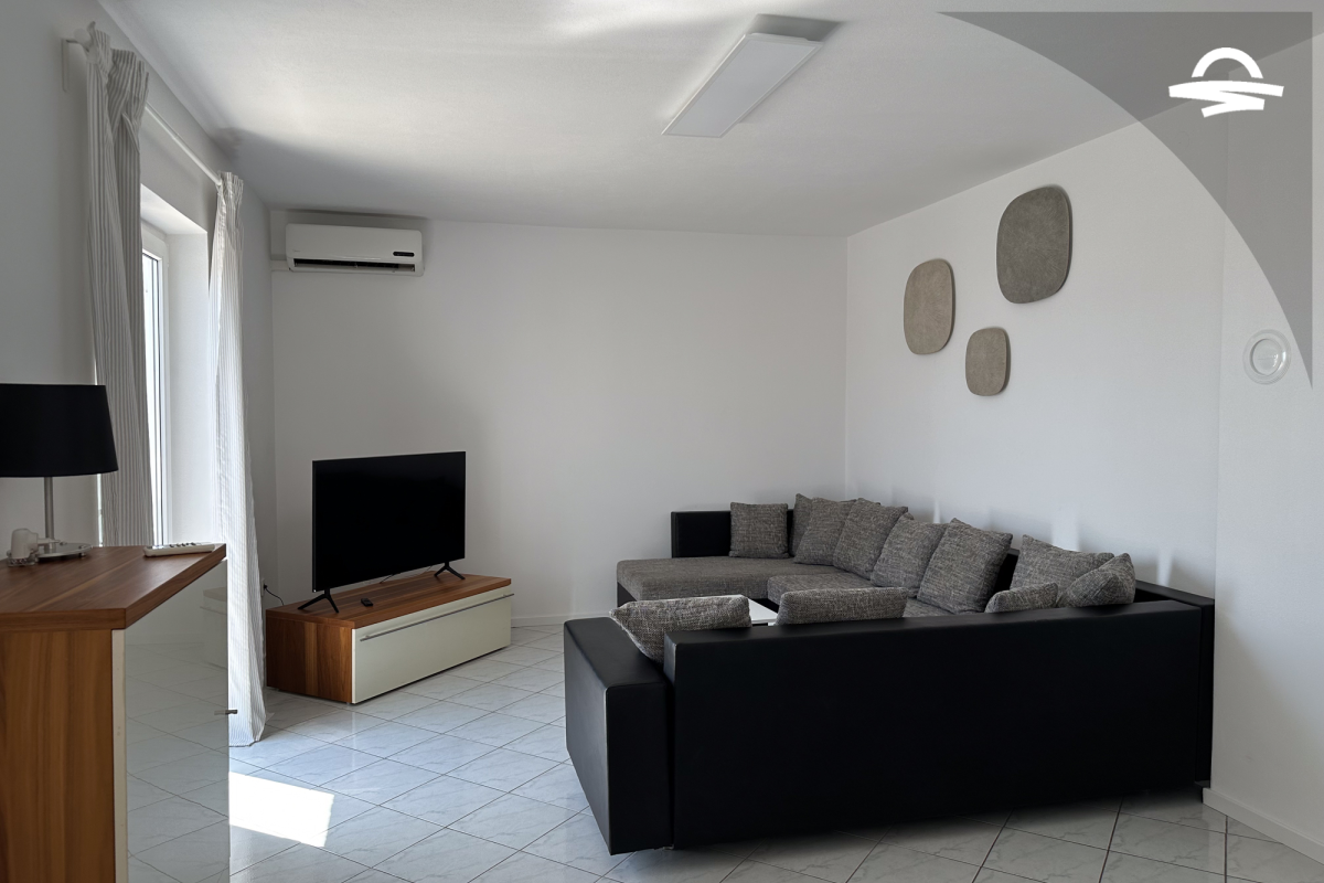 The apartment Barica is situated on the 2. floor of a family house. This nice apartment of 70 m2 has kitchen and living room, one double room, one triple room, one bathroom with bathtub, one bathroom with shower, and balcony of 16 m2 with wonderful sea view. It is ideal for 4-5 persons.
