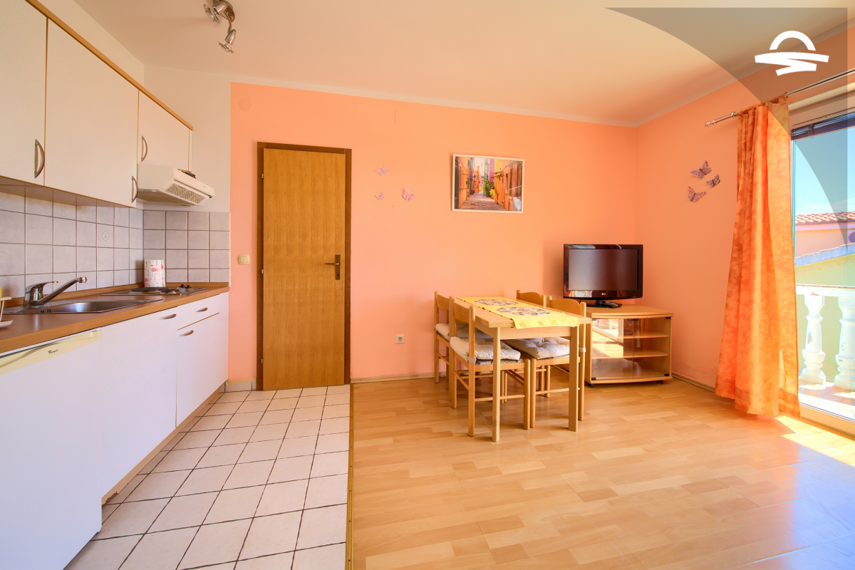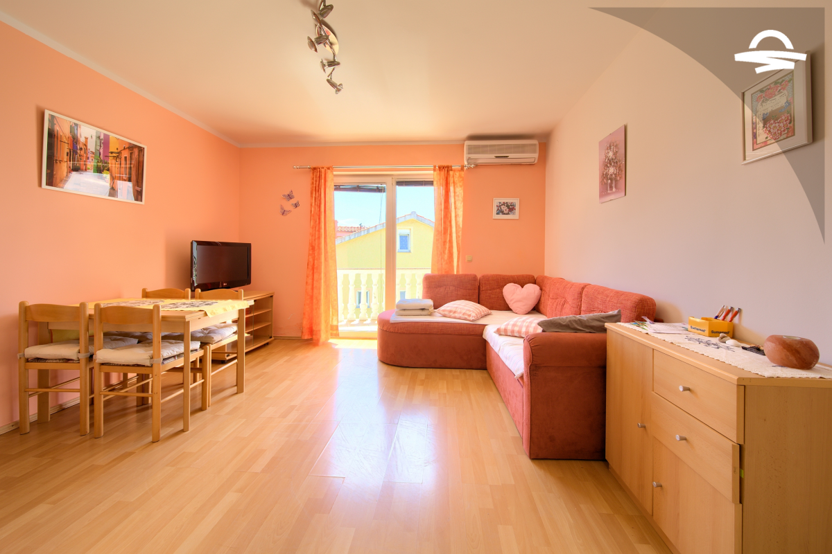 Simply decorated, but charming apartment Henrik is situated on the 2. floor of an apartment building. This nice apartment of 35 m2 has kitchen and living room, one double room, bathroom with shower, and two balconies. One balcony is from the bedroom, and the second one with wonderful sea view from the living room. The apartment can accommodate 2-3 persons.
