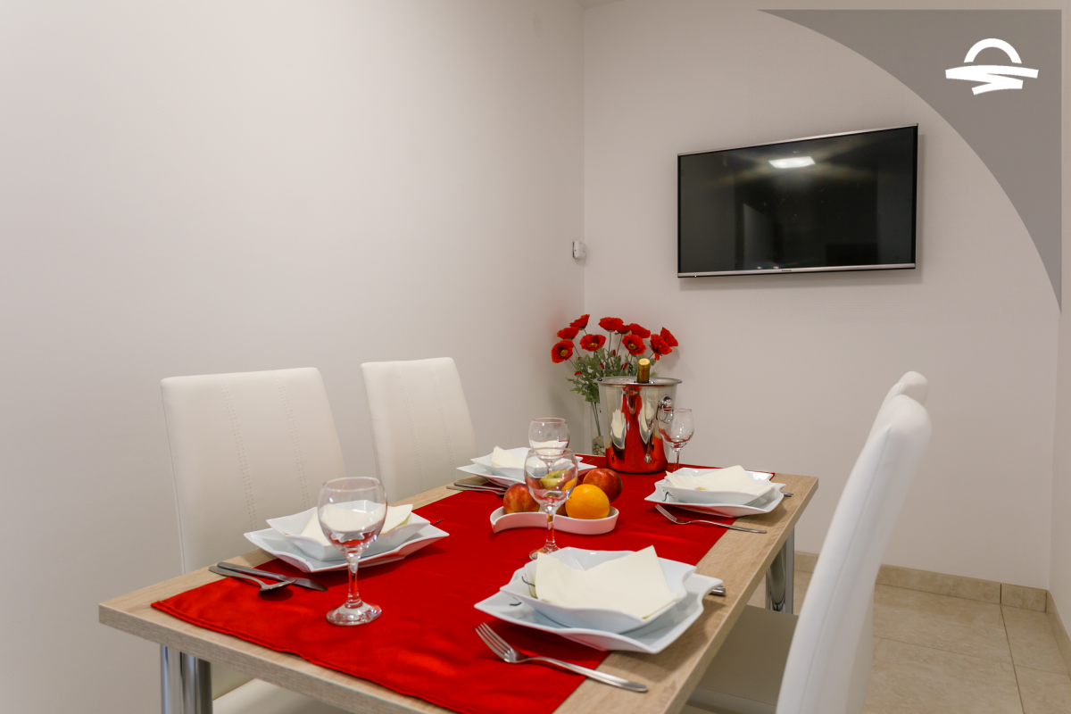 The apartment is air conditioned, with free WiFi, SAT-TV, common barbecue and parking place.