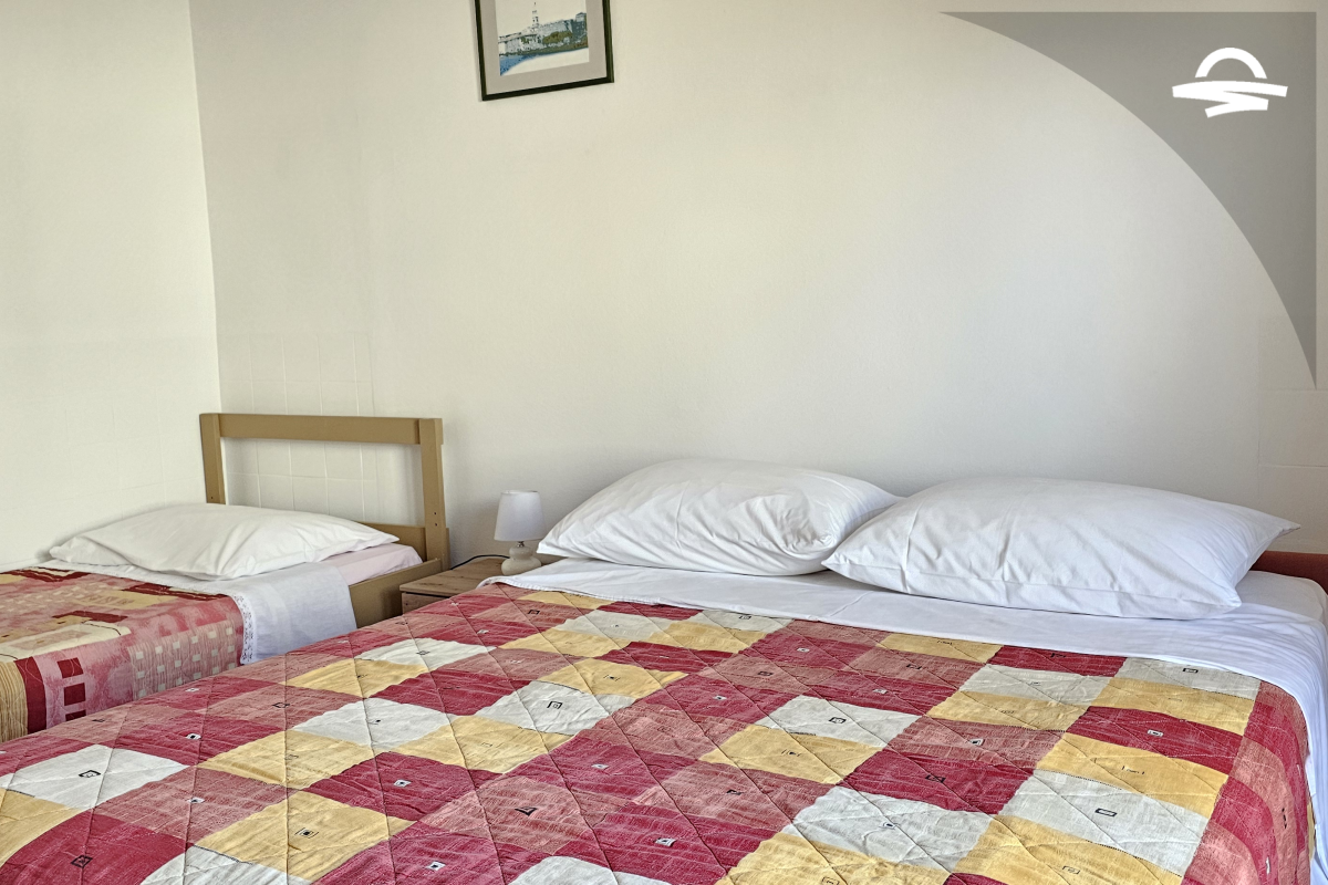Simply decorated, but comfortable apartment Rudolf 3 is situated on the ground floor. This apartment of 70 m2 can accommodate 4-5 persons. It consists of kitchen and living room, one double room, one triple room, two bathrooms with shower, and terrace.