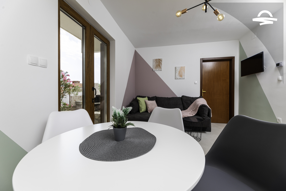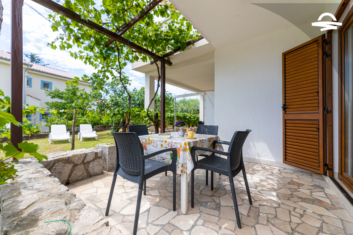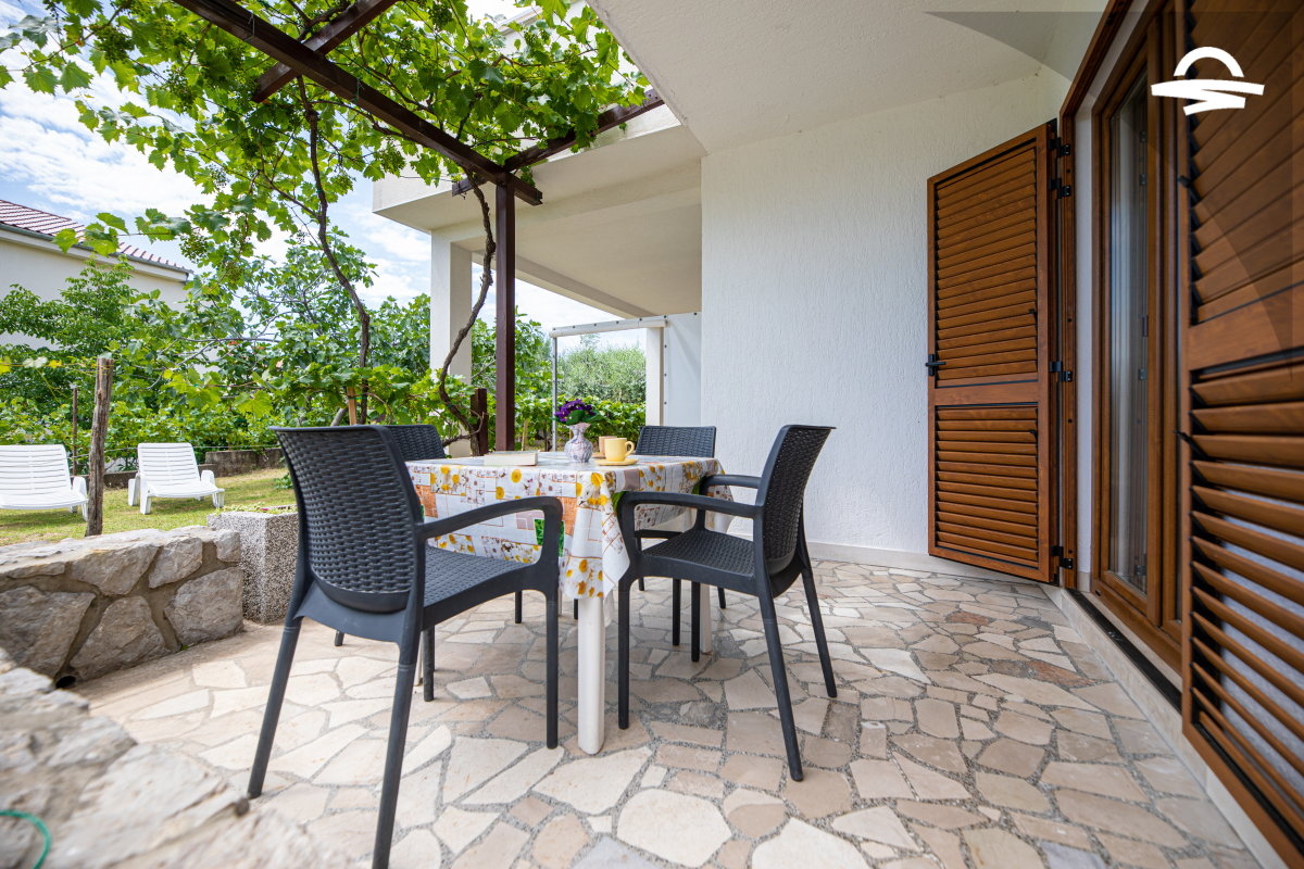 Simply decorated, but comfortable apartment Vjeko 1 is situated on the ground floor of a family house. The apartment has 50 m2 and can accommodate 4-5 persons. It consists of kitchen and living room, one double room, one room with separate beds, bathroom with shower, and terrace.