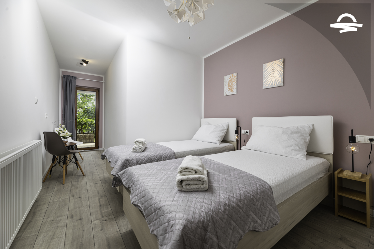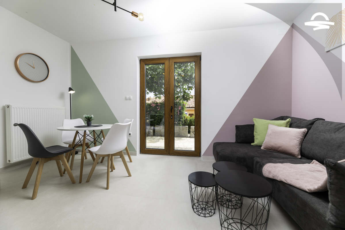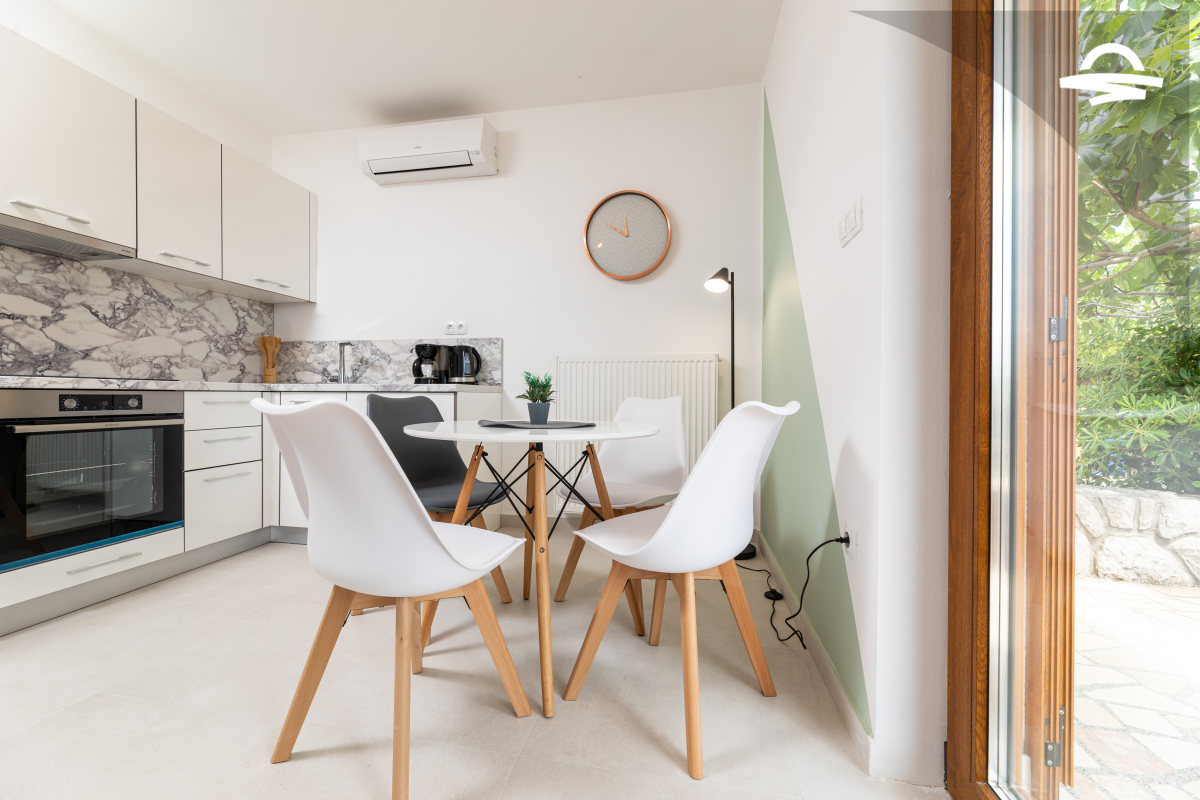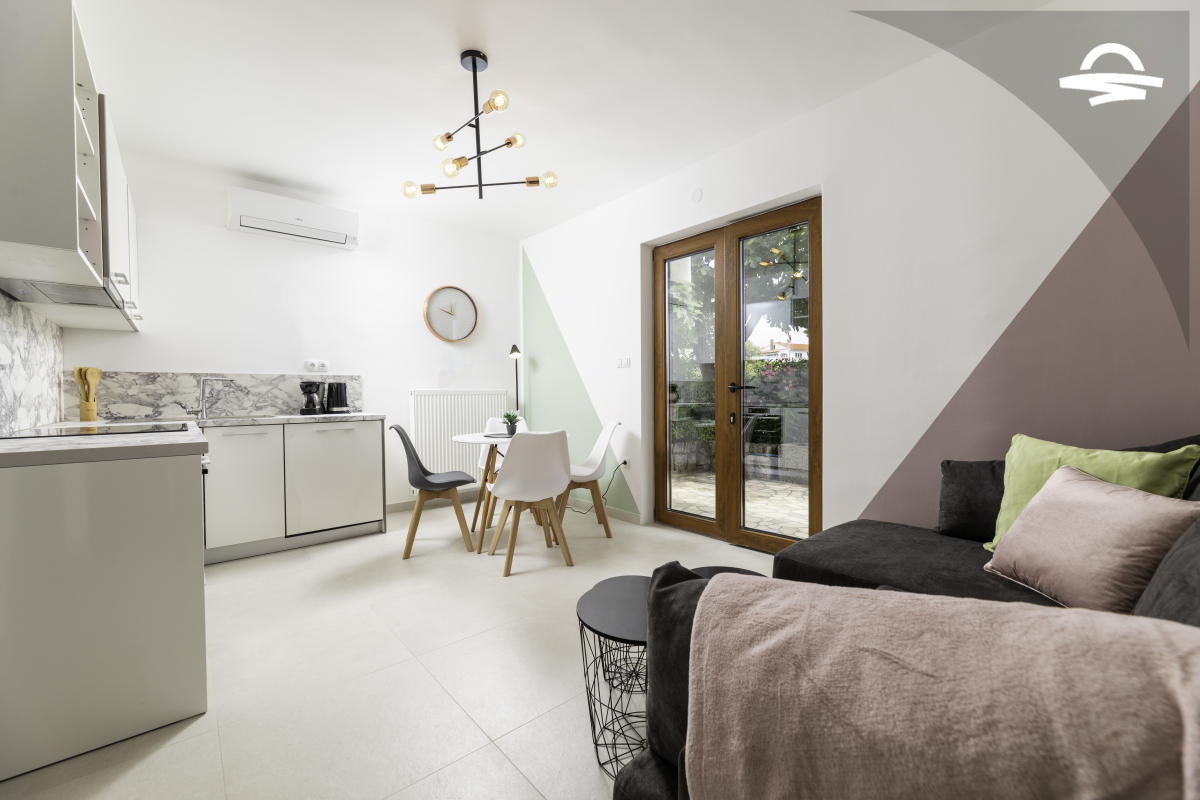 Simply decorated, but comfortable apartment Vjeko 1 is situated on the ground floor of a family house. The apartment has 50 m2 and can accommodate 4-5 persons. It consists of kitchen and living room, one double room, one room with separate beds, bathroom with shower, and terrace.