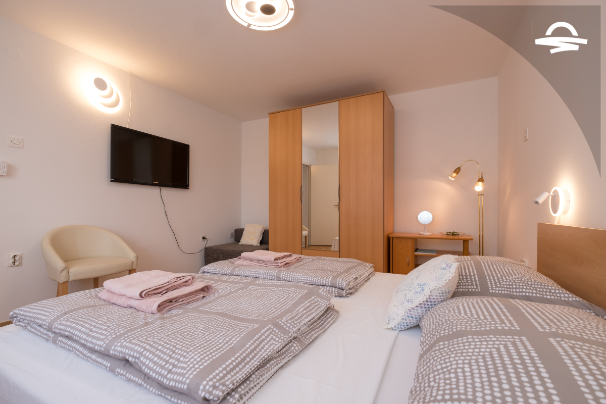 Suitable equipped apartment Zvjezdana is situated on the 2. floor of a family house. The apartment has 48 m2 and consists of kitchen, two double rooms, one bathroom with shower, and balcony. It is ideal for 4 persons.