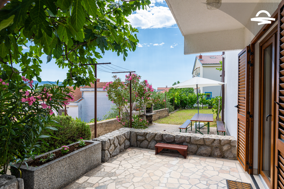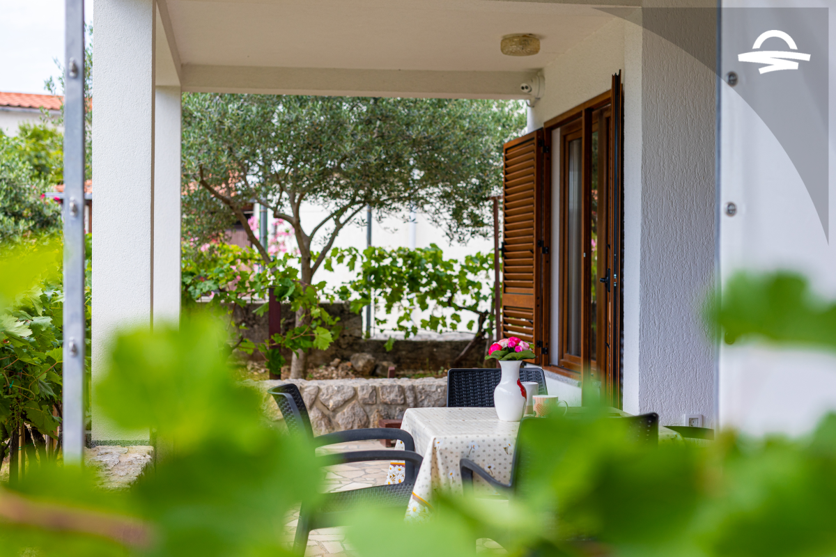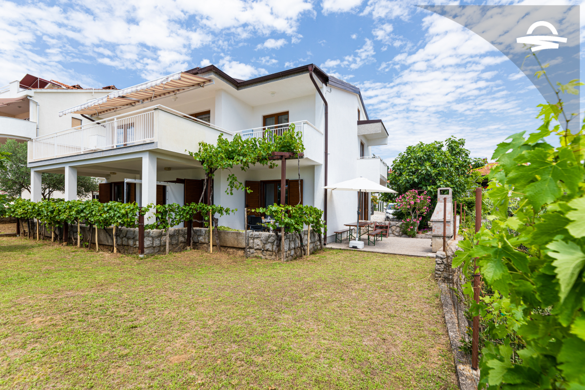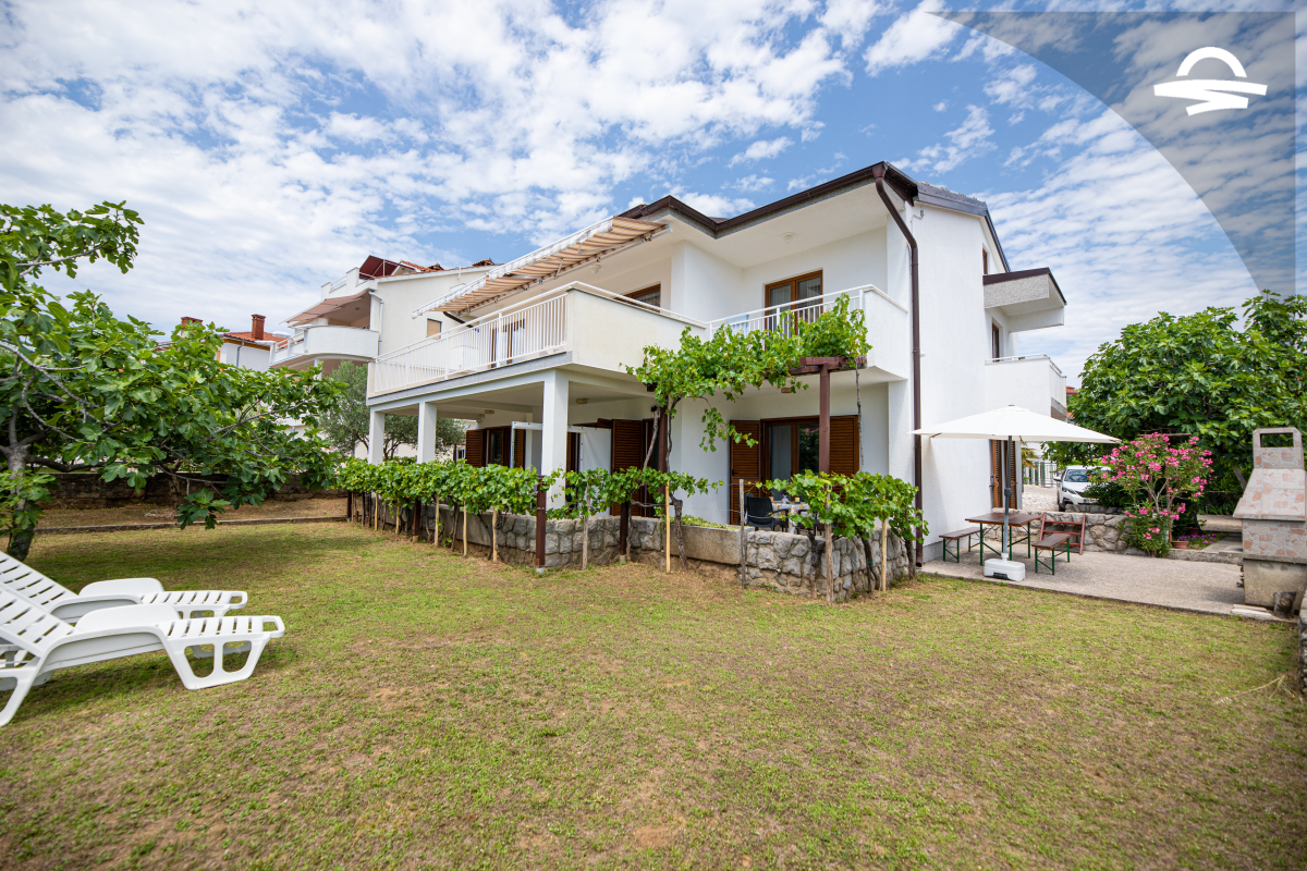 Family house Vjeko is situated in a quiet location in the town of Krk, but only 350 m from the pebble beach and 200 m from the center. In the house are rented two apartments, each with two bedrooms.