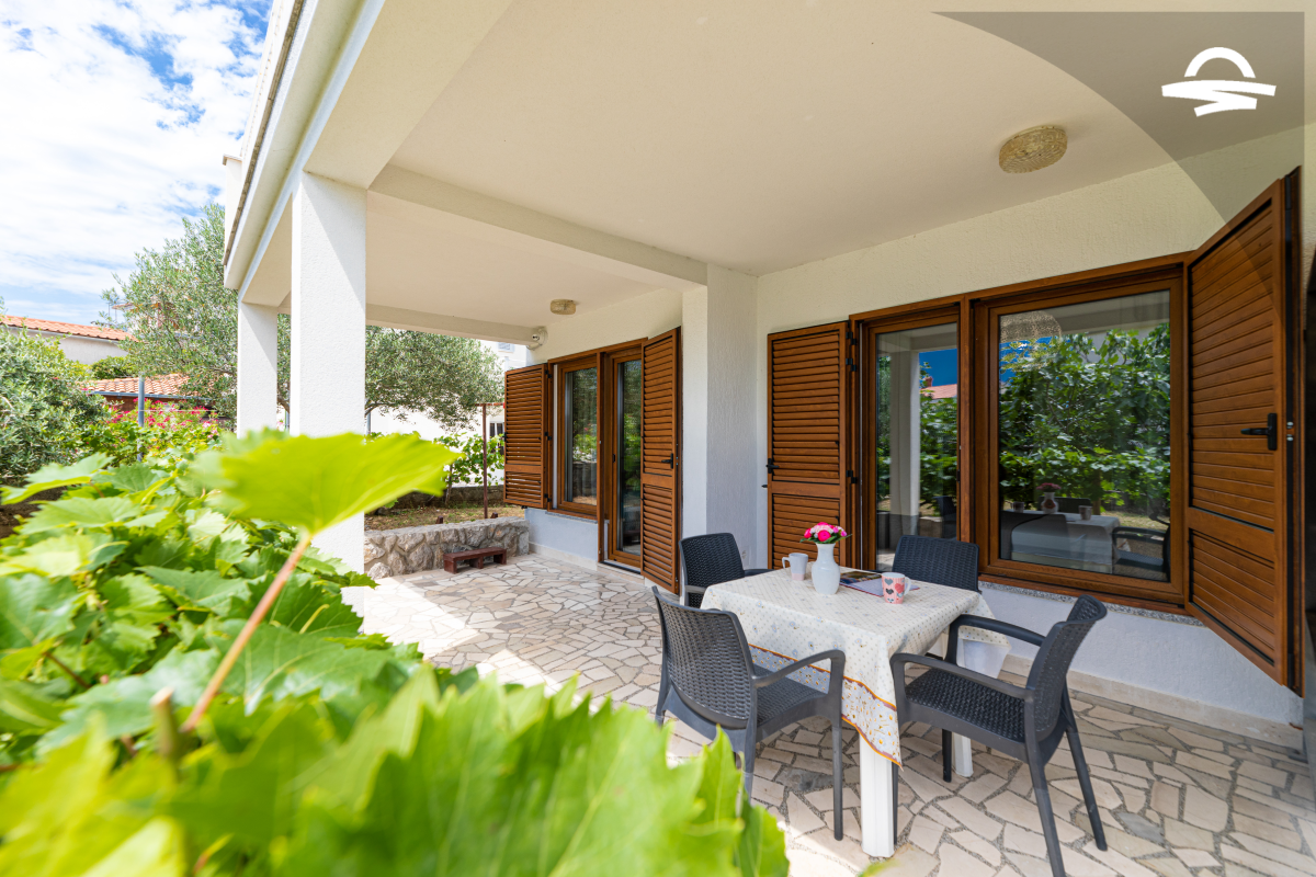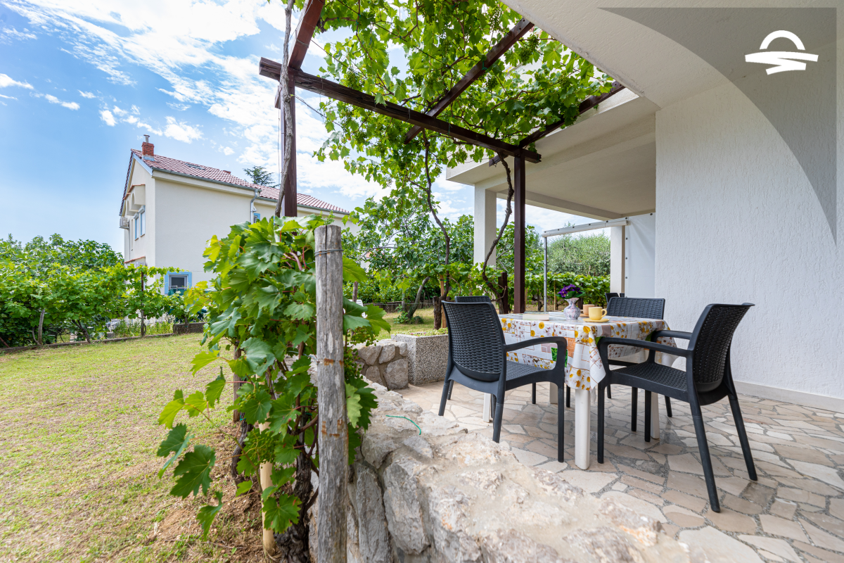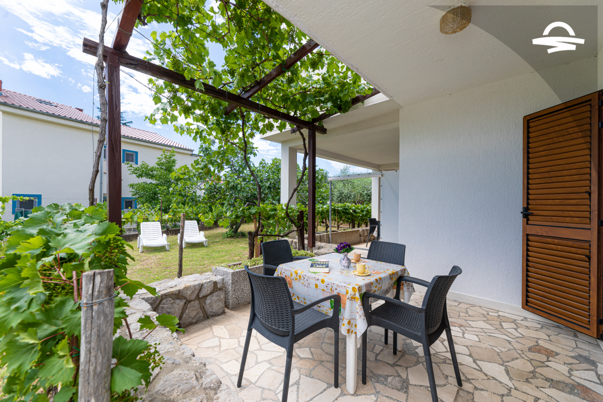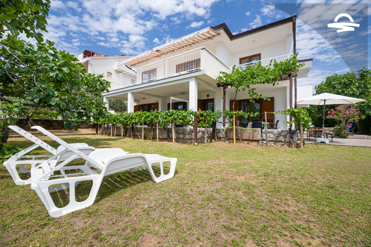 Family house Vjeko is situated in a quiet location in the town of Krk, but only 350 m from the pebble beach and 200 m from the center. In the house are rented two apartments, each with two bedrooms.