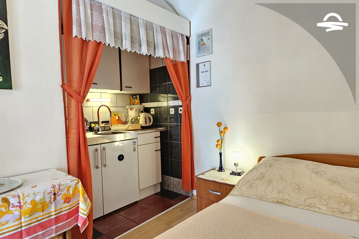 This nice studio of 30 m2 is situated on the ground floor of a family house. It is ideal for 2 persons and has well equipped kitchen and double bed all in one room, bathroom with shower, and terrace.