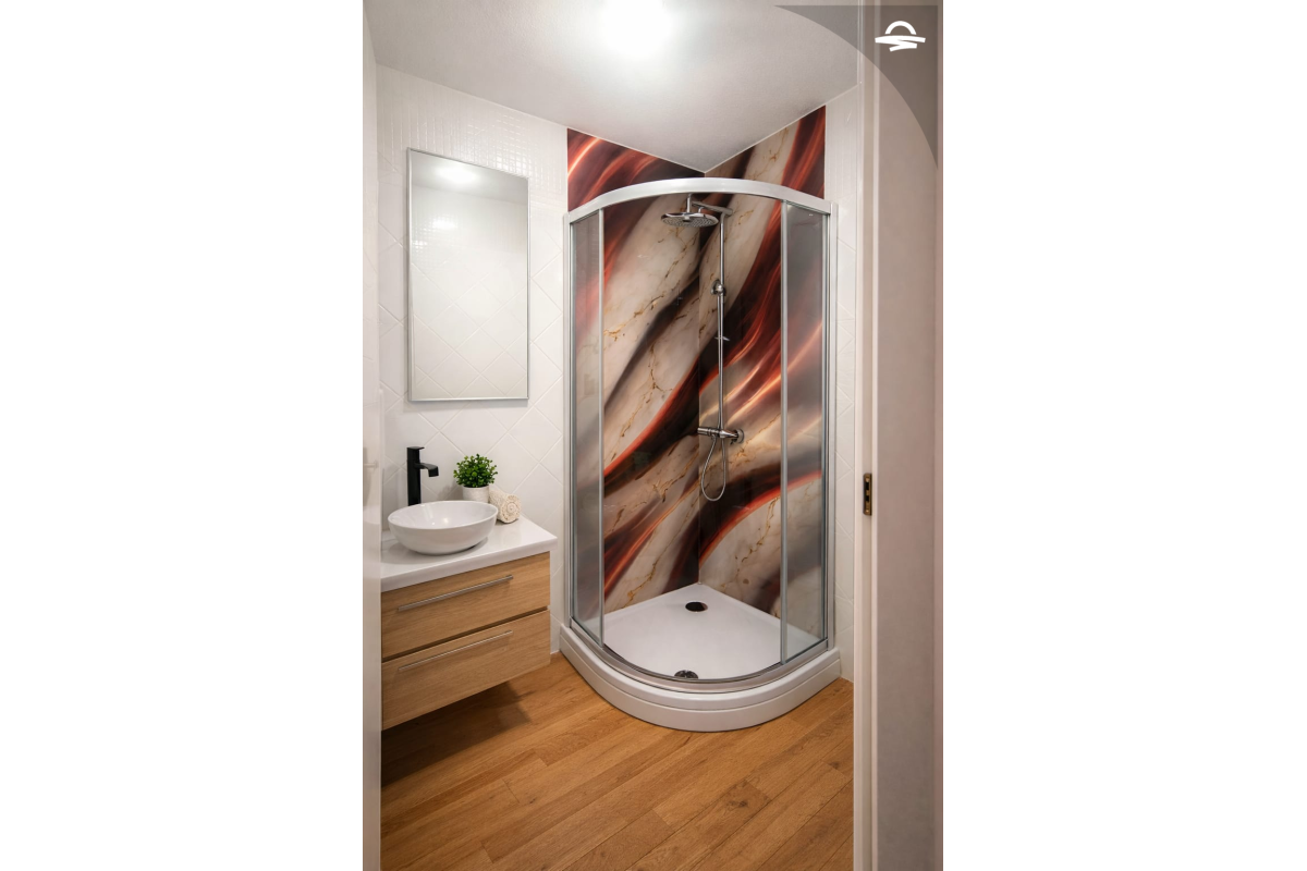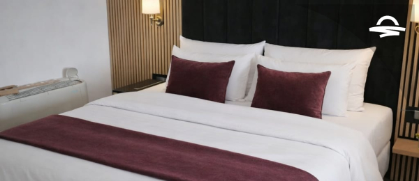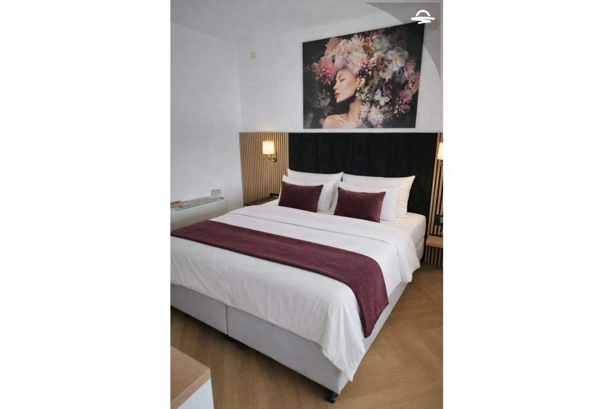 Modern comfortable air-conditioned double room with private bathroom, balcony, a work desk, TV, and free WiFi.